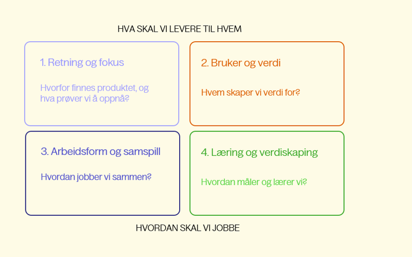 - Retning og fokus – hvorfor finnes produktet, og hva prøver vi å oppnå?