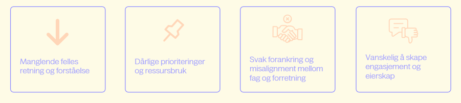Når disse elementene er på plass, har organisasjonen et tydelig kompass for prioriteringer og beslutninger.
